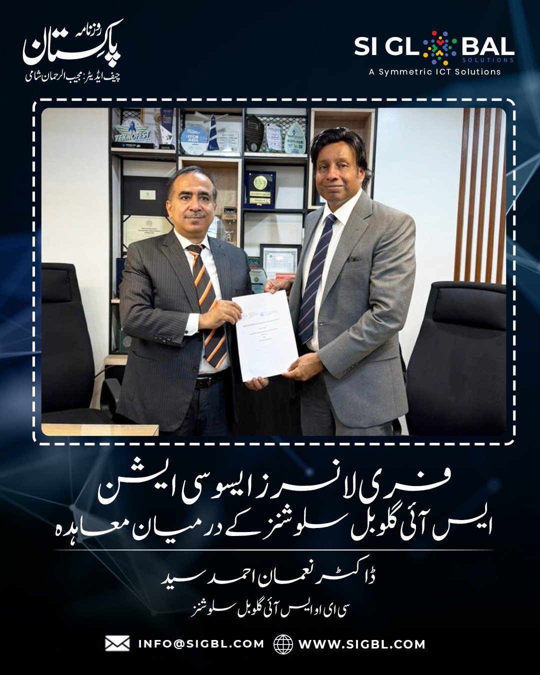 March 27, 2026 By Abdul Rauf CEO of SI Global Solutions, Dr. Noman Said, signed the agreement in Karachi under which freelancing will be promoted in the country through training workshops, mentorship programs, industry linkages and awareness campaigns. Previous Service Next Service